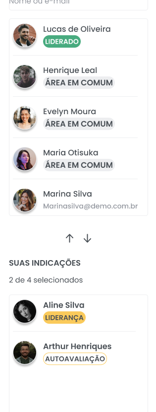 Nesses casos, será necessário selecionar outra pessoa para a avaliação.