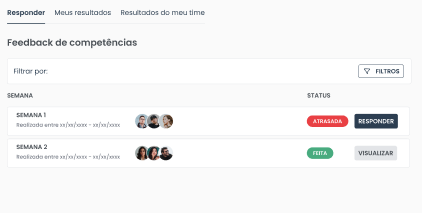 No entanto, você pode visualizar as avaliações já respondidas selecionando a opção "Visualizar" na semana correspondente dentro do programa de Avaliação de desempenho pulso.